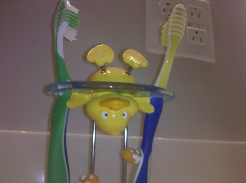 We even have ducks on our bathroom vanity. Howard's brother gave them to him for Christmas. He even included a duck bath mat but that's where I put my foot down. I told Howard that I was only allowing them to stay out until his brother visited and then I was putting them away. That was a month ago and I have yet to make good on that promise. Something tells me they would magically reappear anyway.